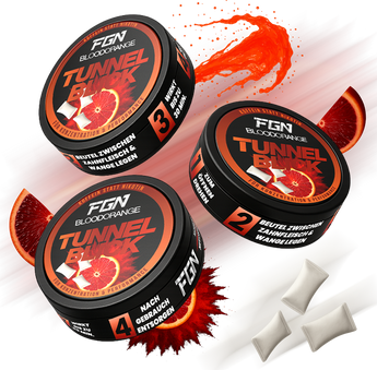 Tunnelblick gibt es in vier erfrischenden Sorten: Blutorange überzeugt mit fruchtiger Intensität, Grüner Apfel Minze kombiniert süß-säuerlichen Geschmack mit kühler Frische, Wassermelone Minze bringt sommerliche Leichtigkeit, und Lemon-Lime Minze sorgt für einen spritzigen, klaren Zitruskick. Alle Sorten sind zuckerfrei und ohne künstlichen Nachgeschmack – für vollen Genuss mit Wirkung.
