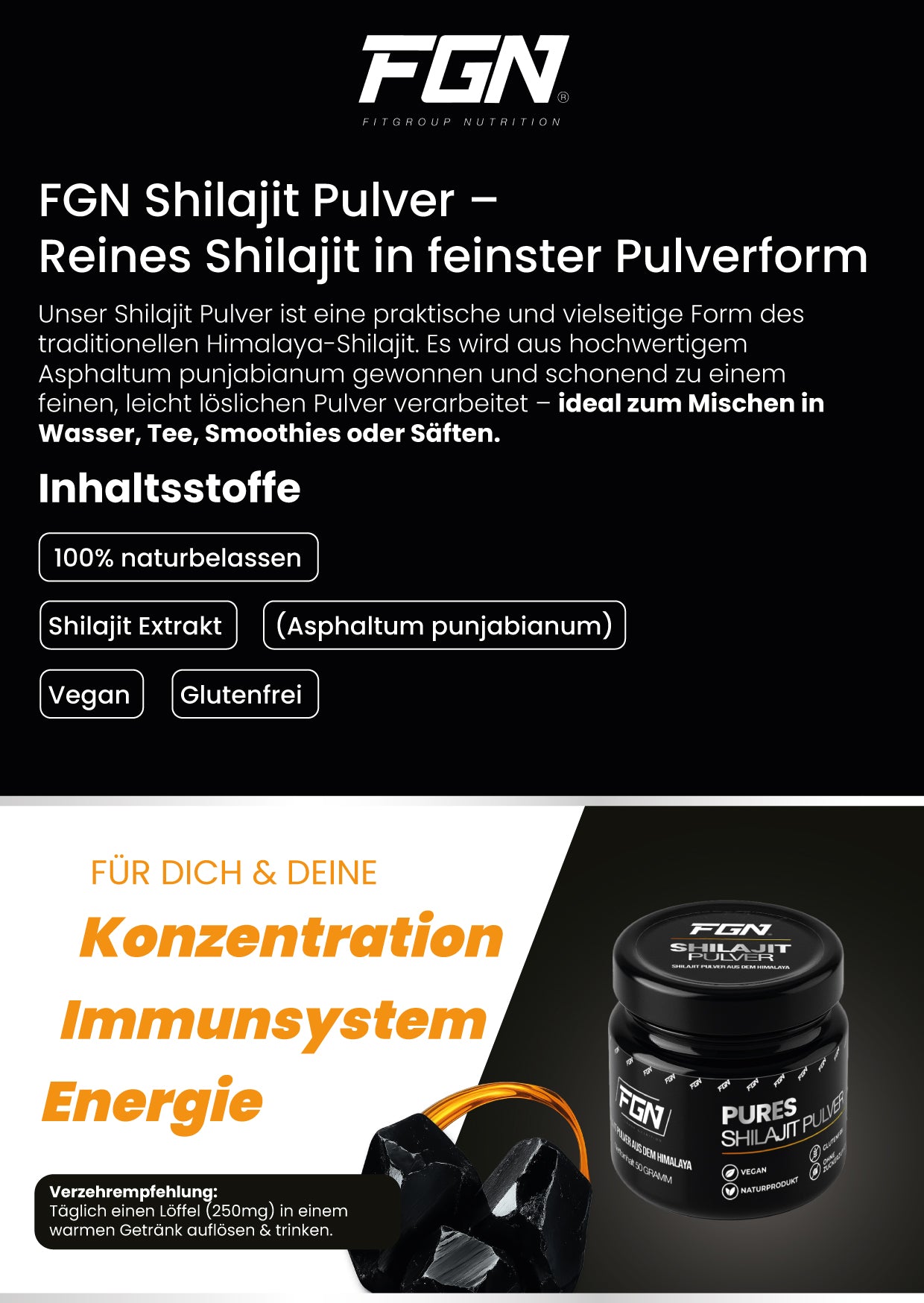 FGN Shilajit Pulver – Reines Shilajit in feinster Pulverform